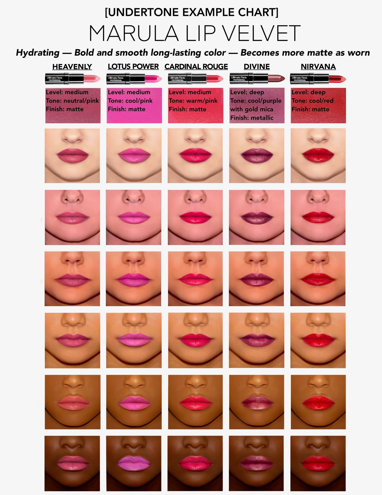 Ultimate Face® Marula Lip Velvet is a revolutionary lip color designed for ultimate comfort, color, care and longevity. The luxurious, full coverage, hydrating and long wear formula of Marula Velvet makes it a favorite among everyone from casual users to professionals, here’s why: